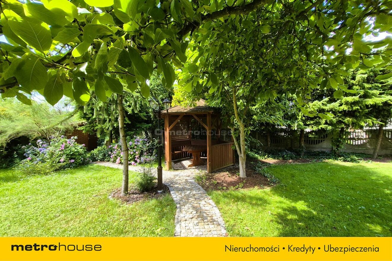Dom otacza zadbany ogród z tarasem wypoczynkowym, wyposażonym w automatyczną markizę z czujnikiem pogodowym to idealne miejsce na poranną kawę lub rodzinne spotkania.